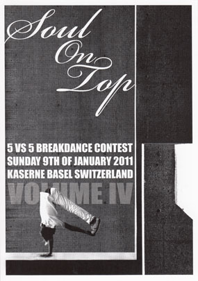 Switzerland. Soul on Top Volume IV was a 5 vs. 5 b-boying battle with 20 crews.