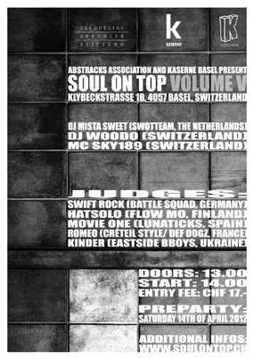 Soul on Top Volume V was held on Sunday 15th of April 2012 at the Kaserne in Basel,